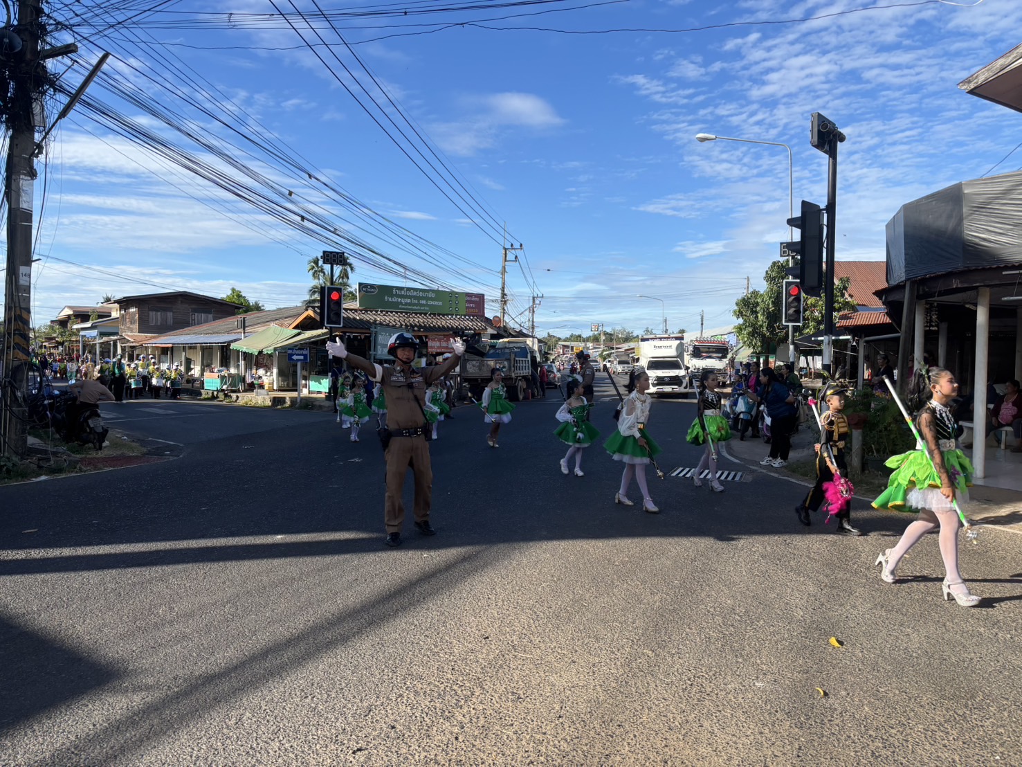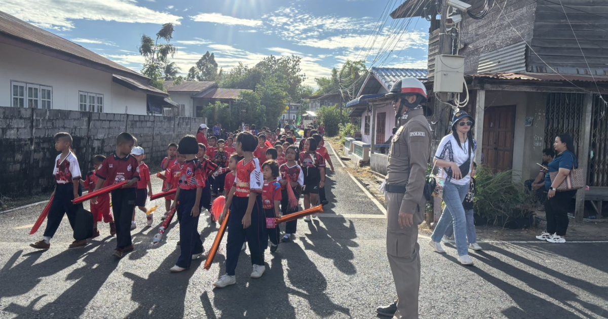 อำนวยความสะดวกการจราจร นักกีฬาตัวน้อย การแข่งขันกีฬาสีภายในของโรงเรียน ชุมชนบ้านนาเยีย