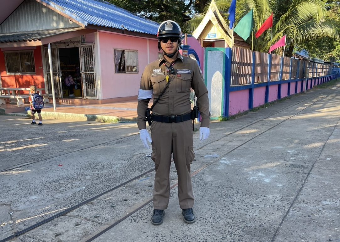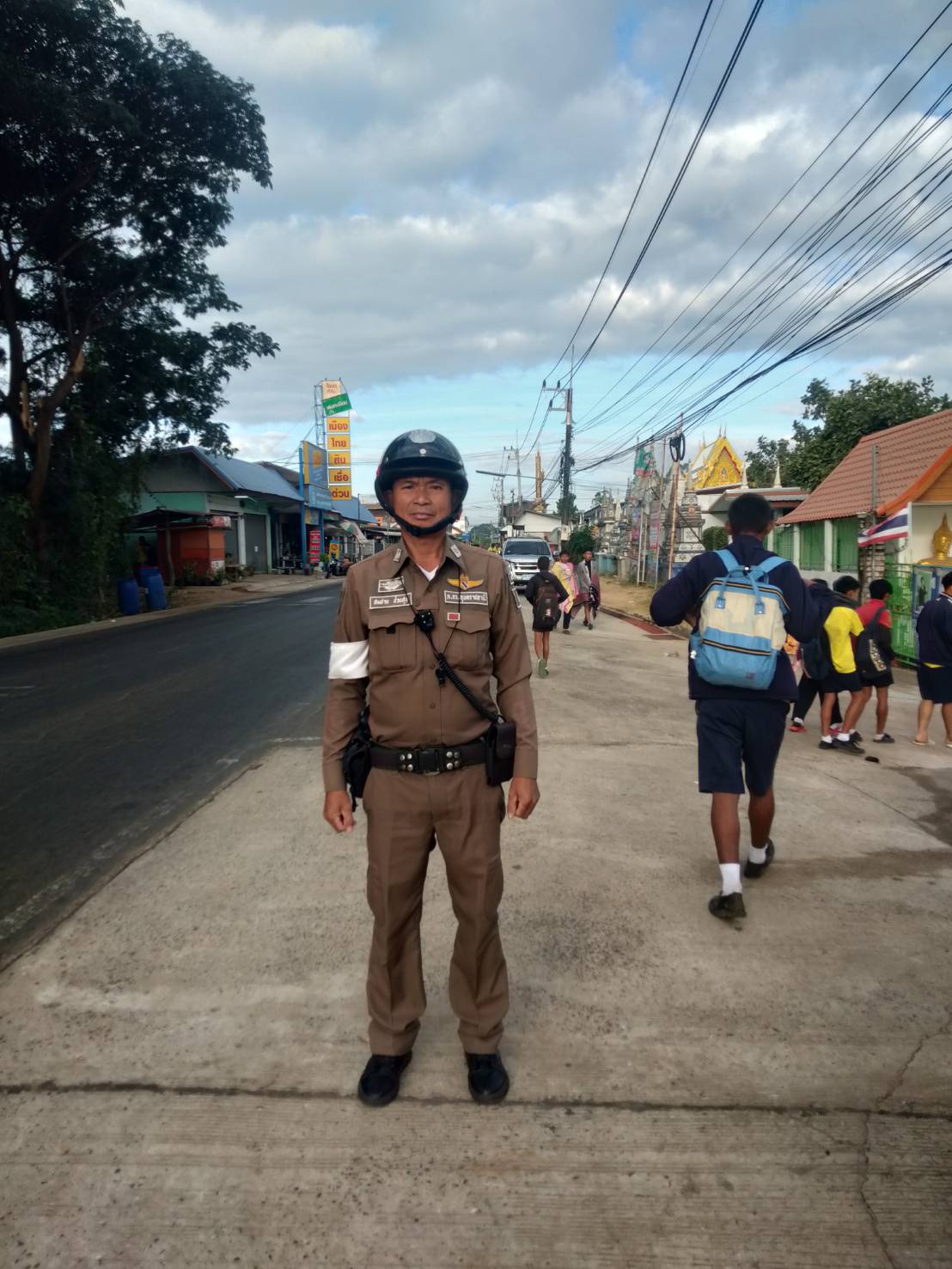 2.ร.ต.ต.สมชาย ช่วยสุข รอง สว.(จร.)สภ.นาเยีย ประจำจุดหน้าโรงเรียนวัดนาเยียวิทยา